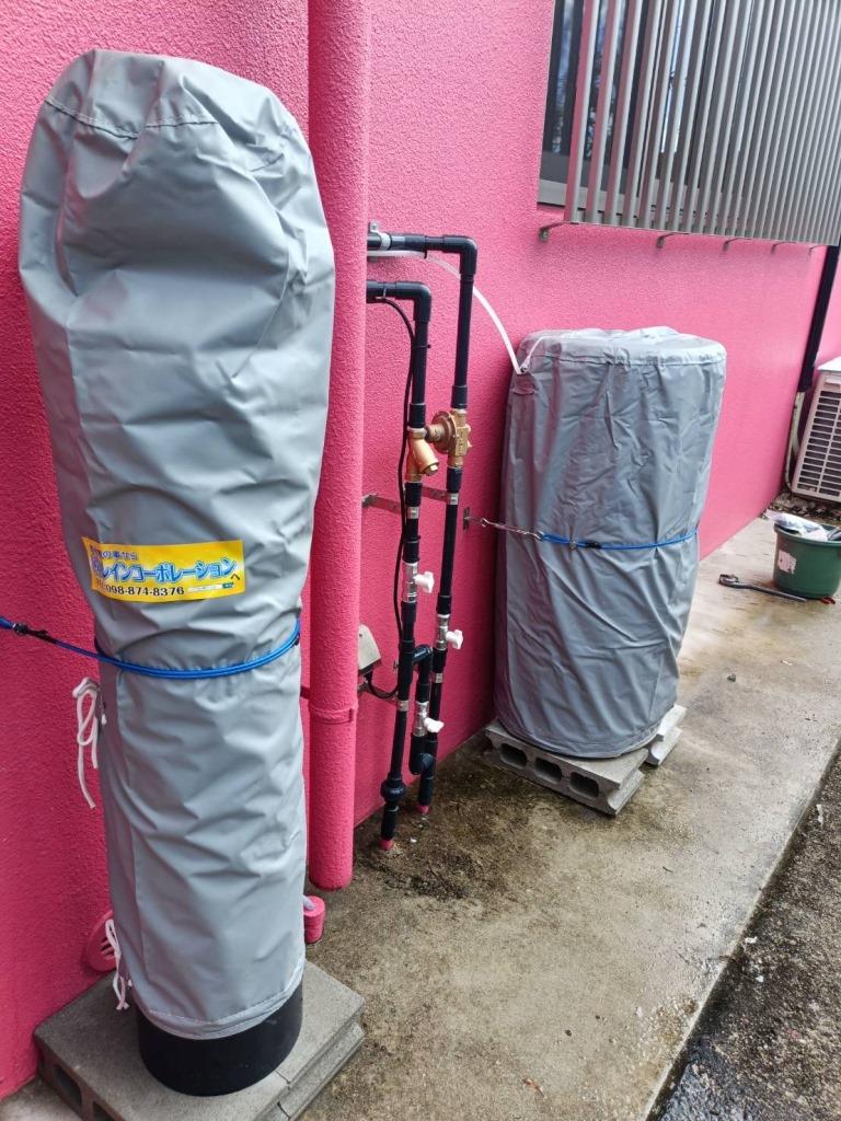 軟水機の屋外設置の際は、専用カバーを使用し外的要因(紫外線や雨)から保護する様にしております。