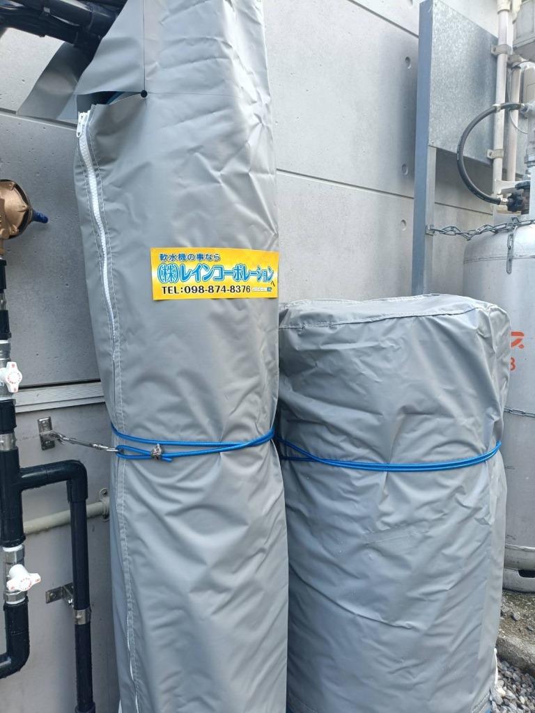 軟水機の屋外設置の際は、専用カバーを使用し外的要因(紫外線や雨)から保護する様にしております。