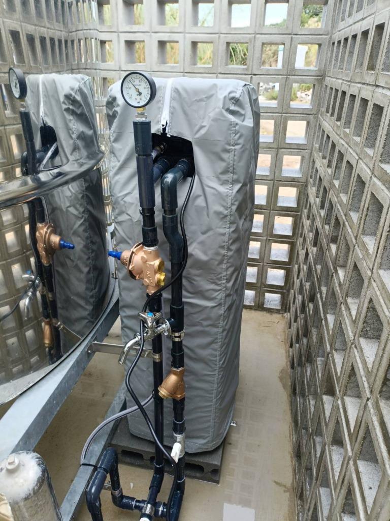 軟水機の屋外設置の際は、専用カバーを使用し外的要因(紫外線や雨)から保護する様にしております。